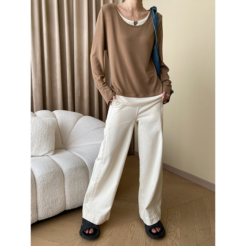 | nameOriginal | Sinan fashionable blogger style niche fake two-piece round neck bottoming shirt T-shirt 2024 early spring new SN5034 |