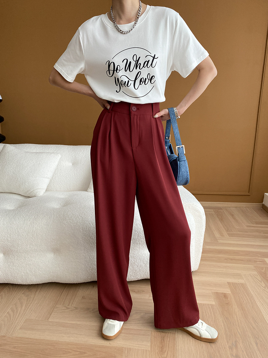 Sinan French High-Order Tone Temperament Commuter Draped High Waist Pleated Casual Straight-Leg Pants 5561