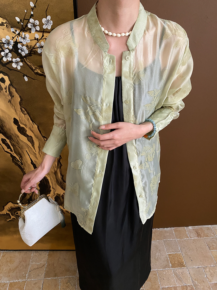 | nameOriginal | Sinan ink Yanyu Jiangnan new Chinese style national style burning flower flocking micro-transparent mesh sunscreen shirt 5541 |