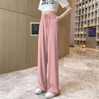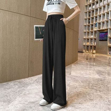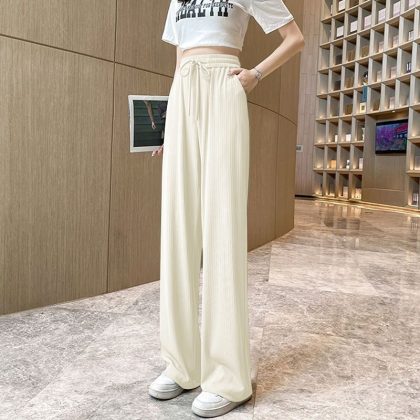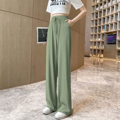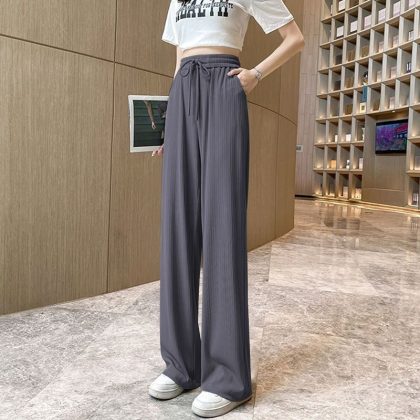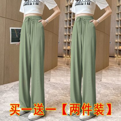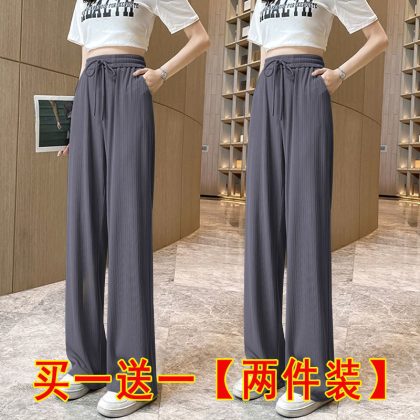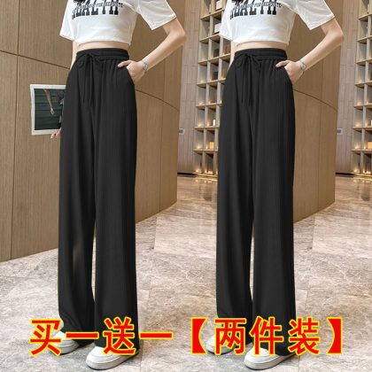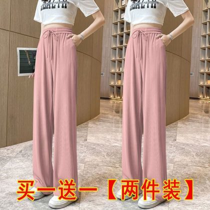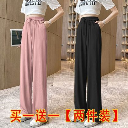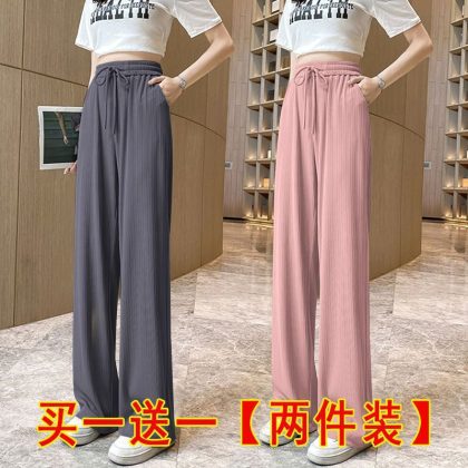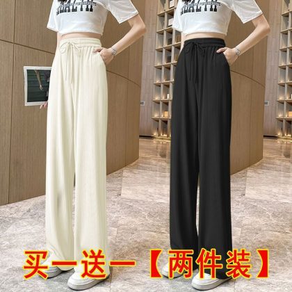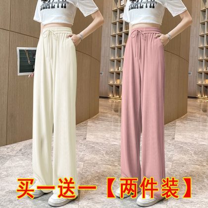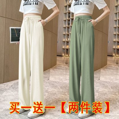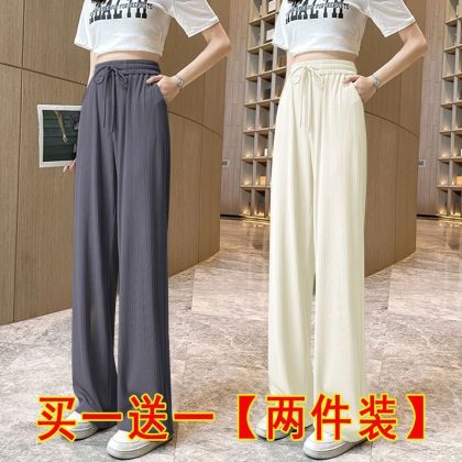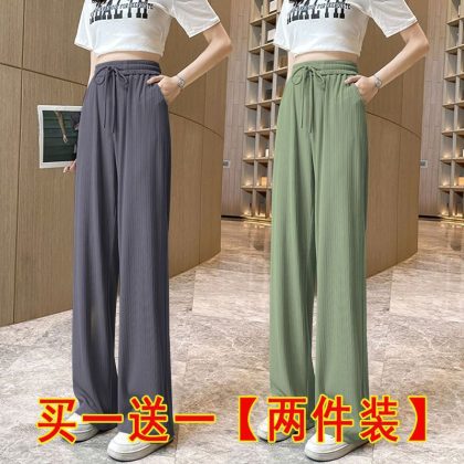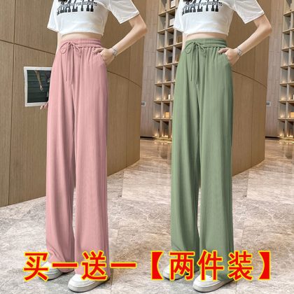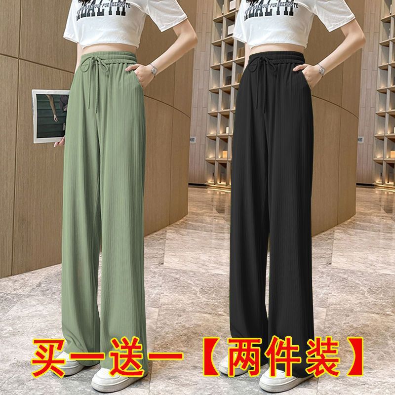 nameOriginal | Single/Two Piece Ice Silk Wide Leg Pants Women's Summer Thin High Waist Dosing Casual Slimming All-match Straight Pants |