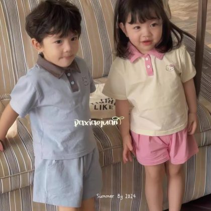 nameOriginal | Size Roll Boys and Girls Children Summer College Style Suit Shorts Short-sleeved Summer Sports Casual POLO Shirt Two Pieces |