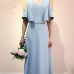 | nameOriginal | Sky blue long stage performance v-neck bridesmaid dress |