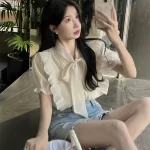 | nameOriginal | Sleek and chic, western-style short top with bow tie |