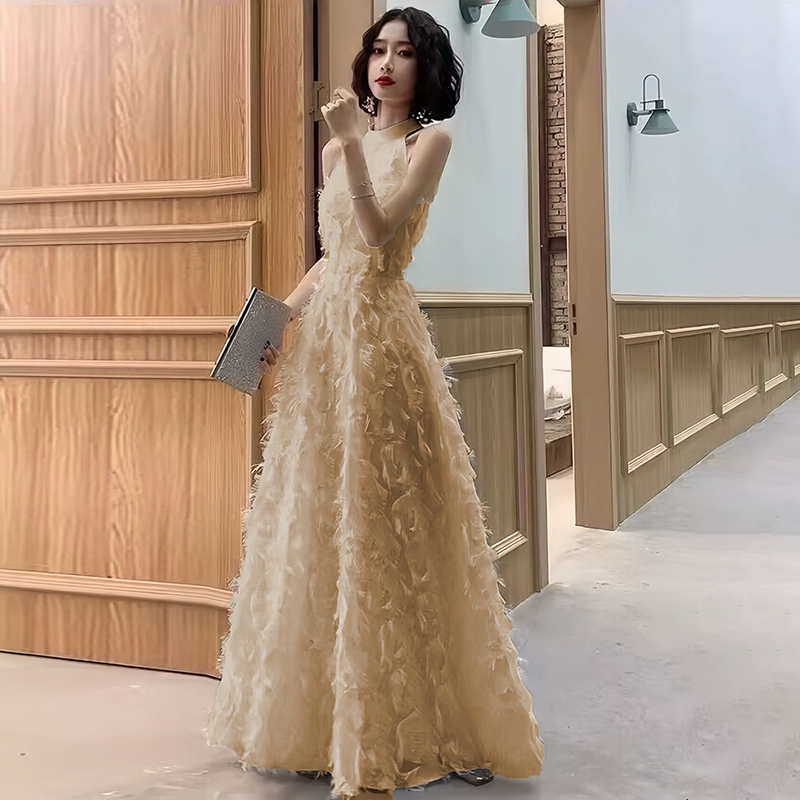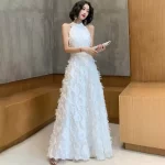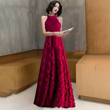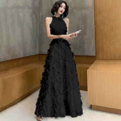 | nameOriginal | Sleeveless halter neck long mini dress for birthday party |