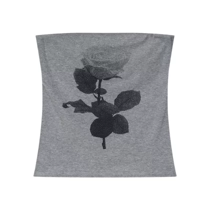 Sleeveless Sweet Girl Slim Fit Gray Slit Rose Print