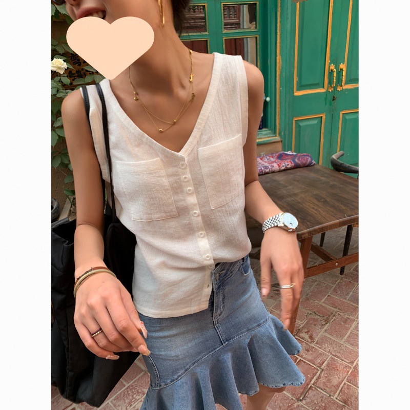 | nameOriginal | Sleeveless Top Summer Vest Women's Light Cotton and Linen Outer Wearing Vest Inner Slimming Loose Waistcoat Chic Pony Clip |