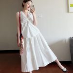 | nameOriginal | Sleeveless Vest Three-dimensional Kink V-neck Top Women's Summer 2024 New Style Belly Covering Unique Chic Niche Chiffon Shirt |