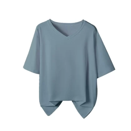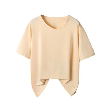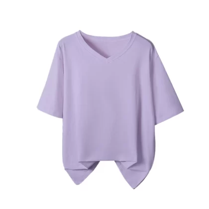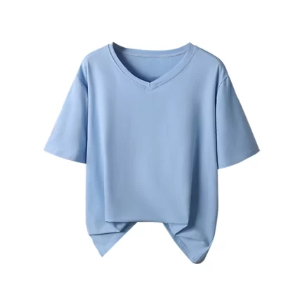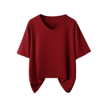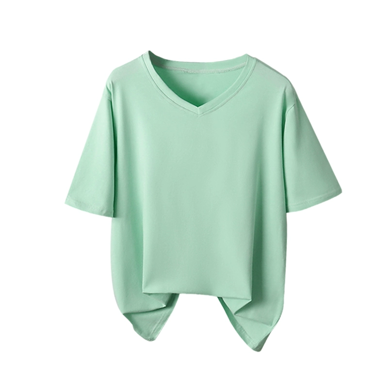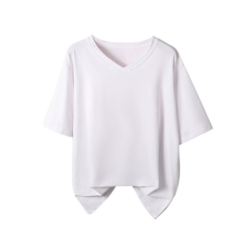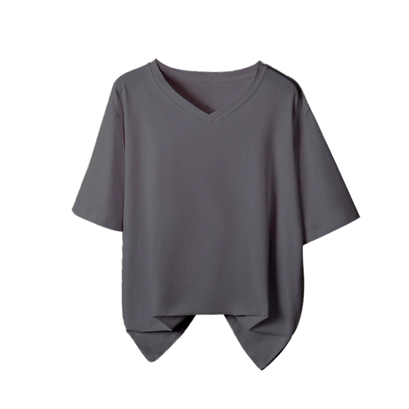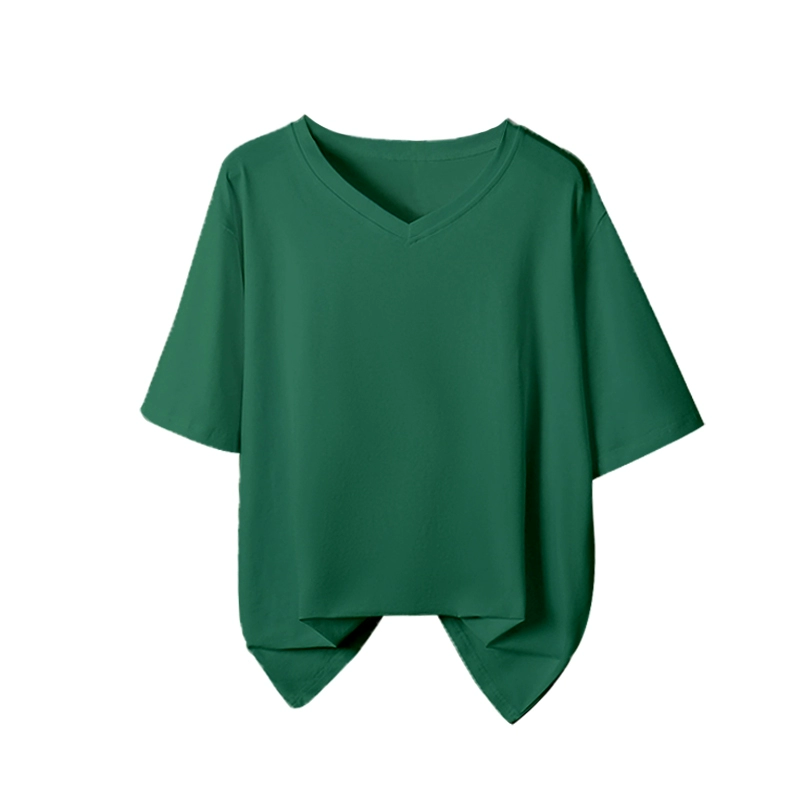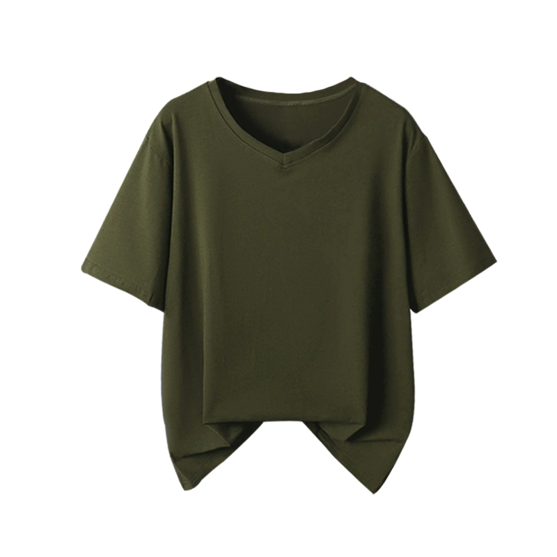 nameOriginal | Slightly fat, slim and temperament v-neck t-shirt for women, right shoulder, short-sleeved, summer simple solid color, collarbone exposed loose top, plus size women's clothing |