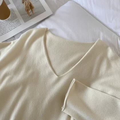 | nameOriginal | Slim and soft solid color V-neck sweater |