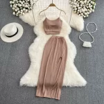 بدلة عصرية رفيعة بدون ظهر ومتوسطة الطول تعانق الورك مع شقوق