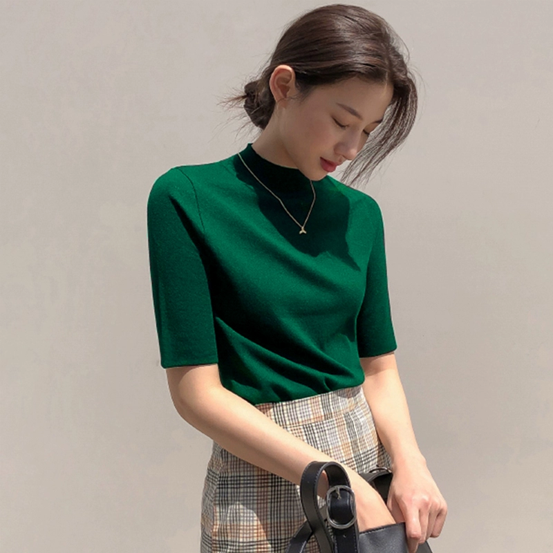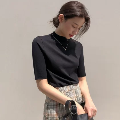 nameOriginal | Slim fit black mid-sleeve spring and autumn half turtleneck sweater |