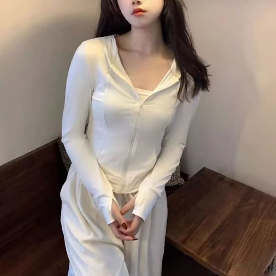 Slim-fit Short Sunscreen Clothing Women's Summer Ice Silk Coat 2024 New Hooded Sunscreen Clothing Tight Sports Top