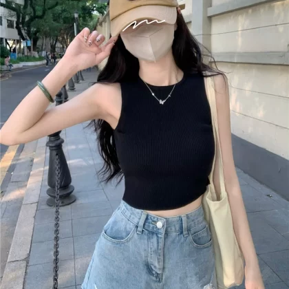 | nameOriginal | Slim-fitting navel-baring sleeveless top knitted vest |