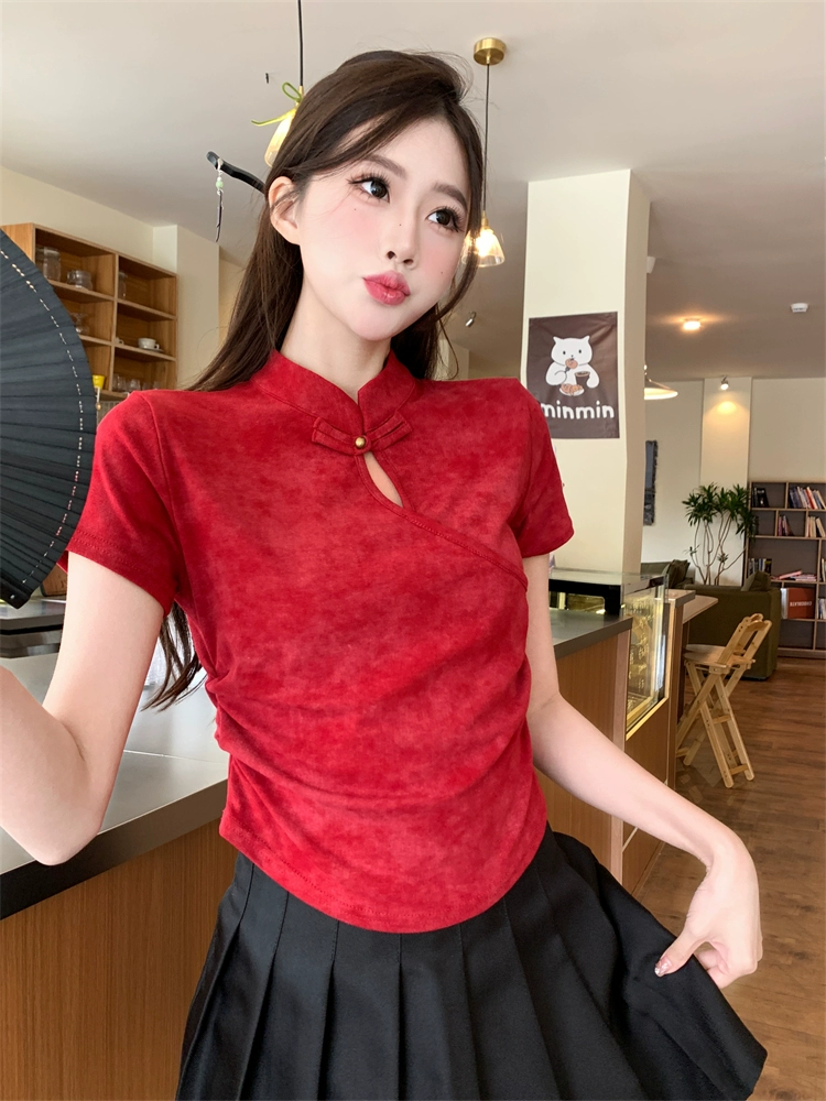 سليم الرجعية الصينية قصيرة الأكمام الصيف مشبك نمط جديد