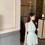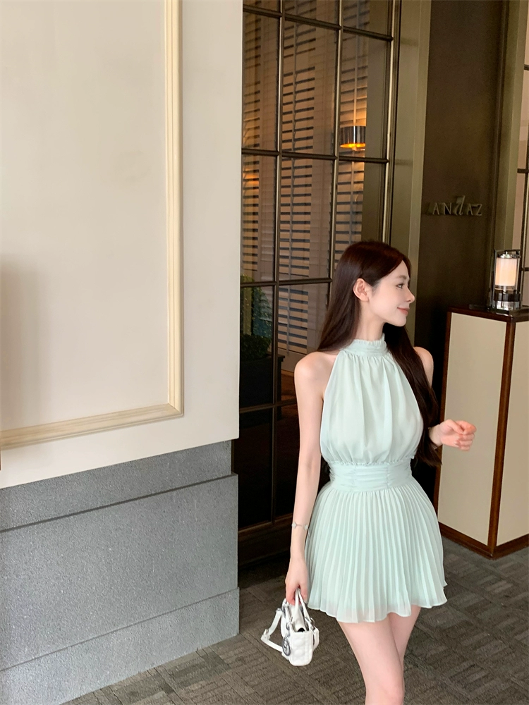 | nameOriginal | Slim shoulder-cut chiffon dress for summer slimming halter neck |