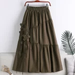 | nameOriginal | Slim three-dimensional solid color mid-length skirt with large hem and flowers |