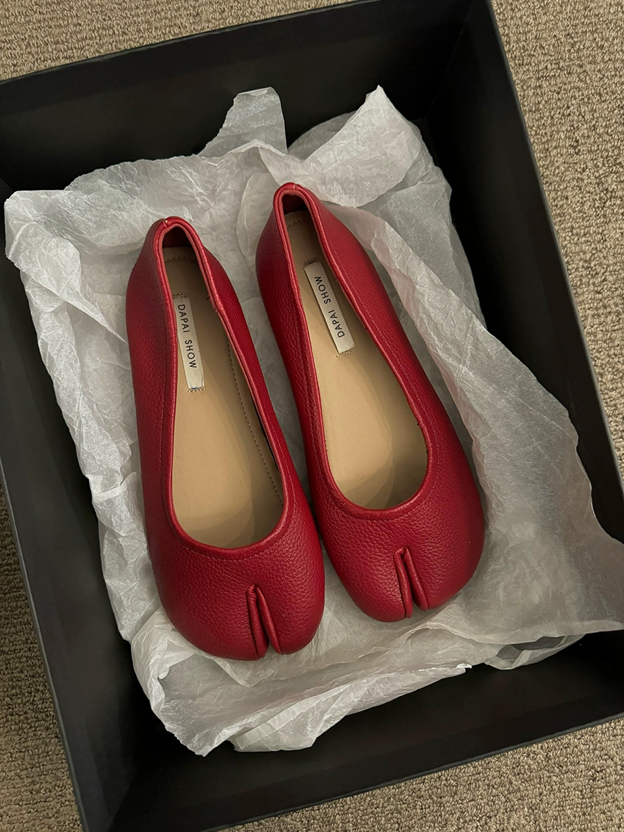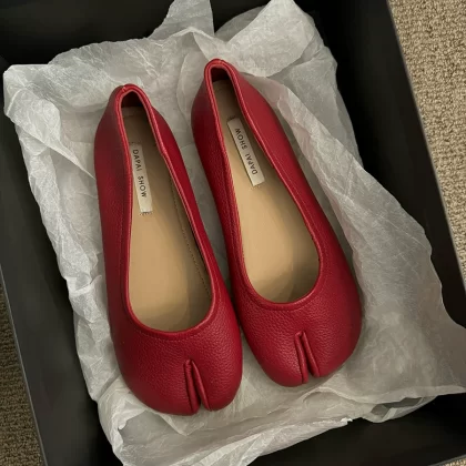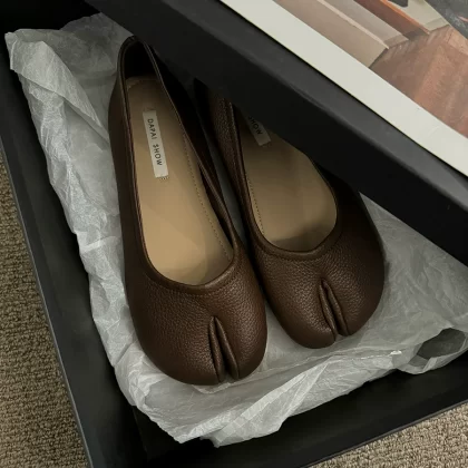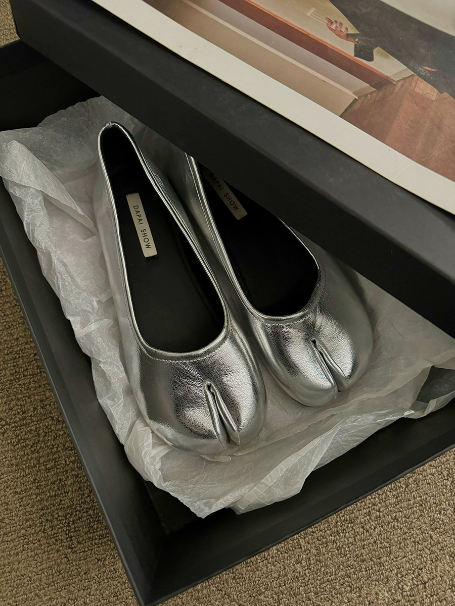 Slip-on split-toe flat spring and autumn silver shoes
