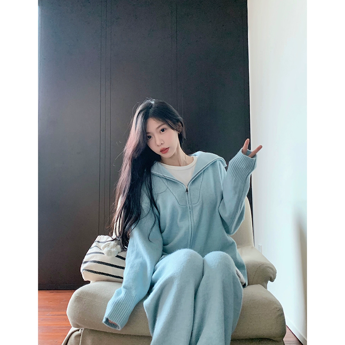 | nameOriginal | Slouchy zippered lapel knitted wide-leg long-sleeved sweater |