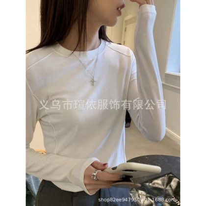 | nameOriginal | Small Collar Base T-shirt Women's Threaded Inner Base Shirt Spring and Autumn Fishbone Pattern Knitted Half-high Collar Long-sleeved Top |