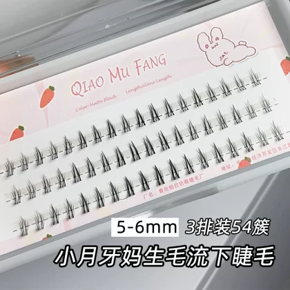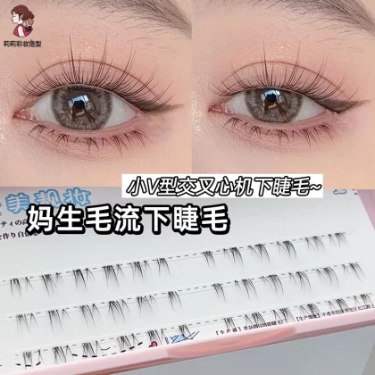 Small crescent lower eyelashes, single cluster thick false eyelashes, V-shaped segmented natural cross Thai comic eyes