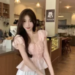 | nameOriginal | Small fresh and sweet pleated pink two-piece set with drawstring |