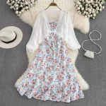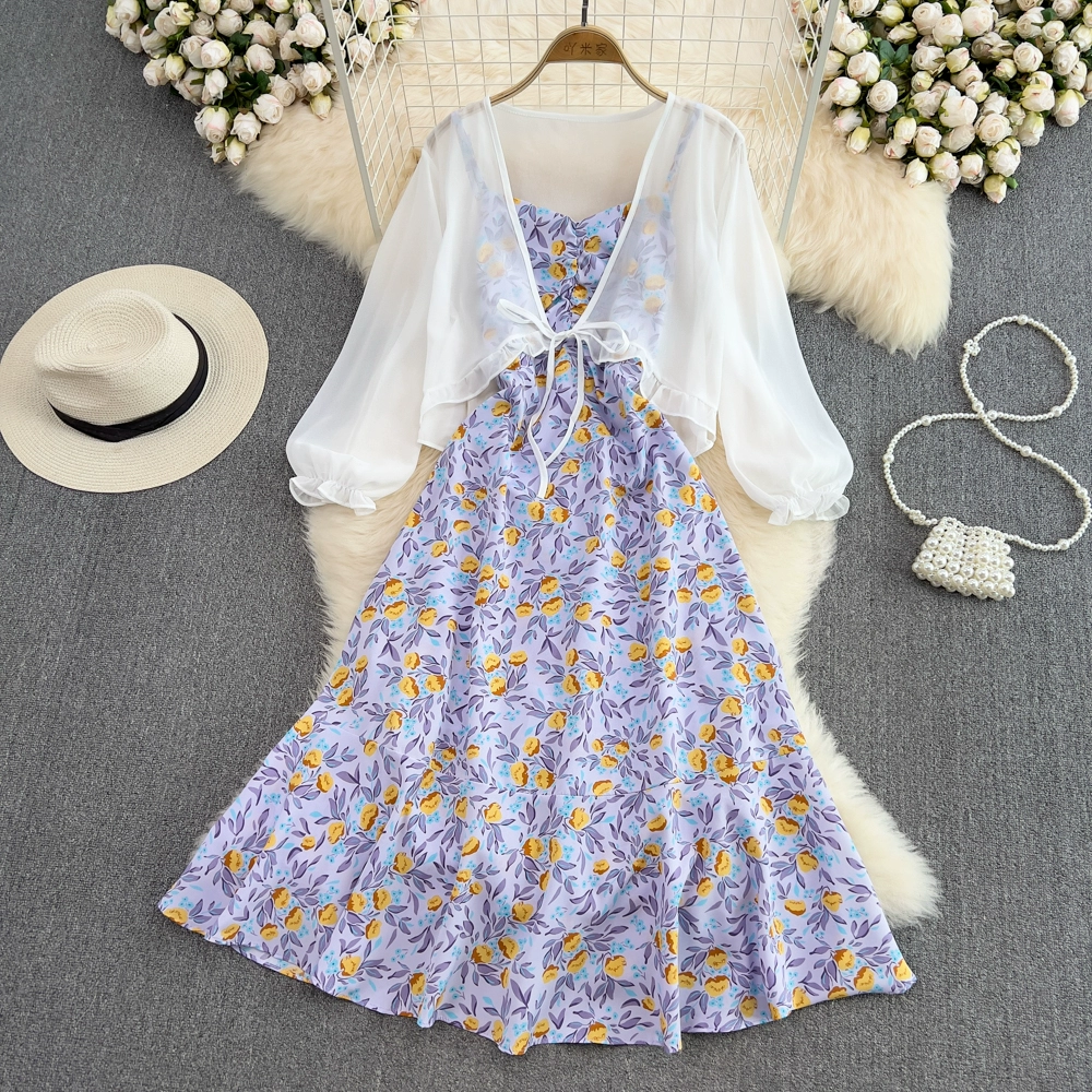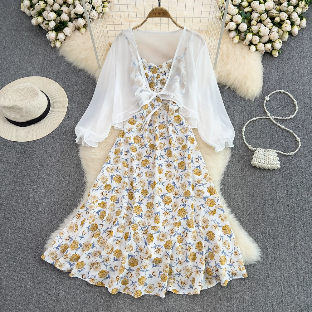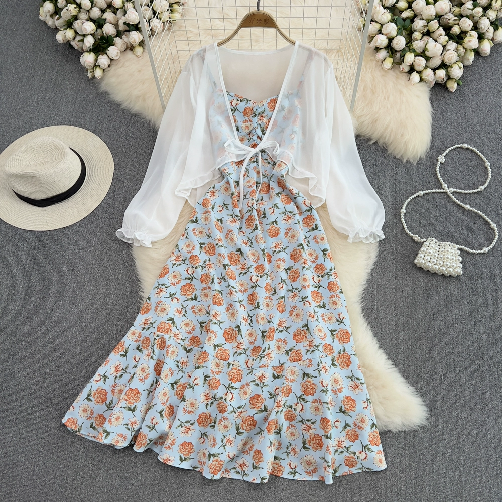 Small fresh backless dress chiffon floral suspender belt
