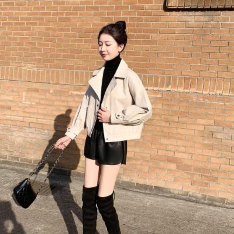 | nameOriginal | Small Leather Jacket 2022 New Women's Spring and Autumn Explosions Leather Jacket Internet Celebrity Loose fleece-lined Short |