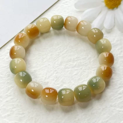 أساور صغيرة من جذر بودي من اليشم الأبيض والليمون الصغير للطالبات للعب بأصابعهن وحولها، وأساور خرز بذور بودي للرجال، وخرز مسبحة