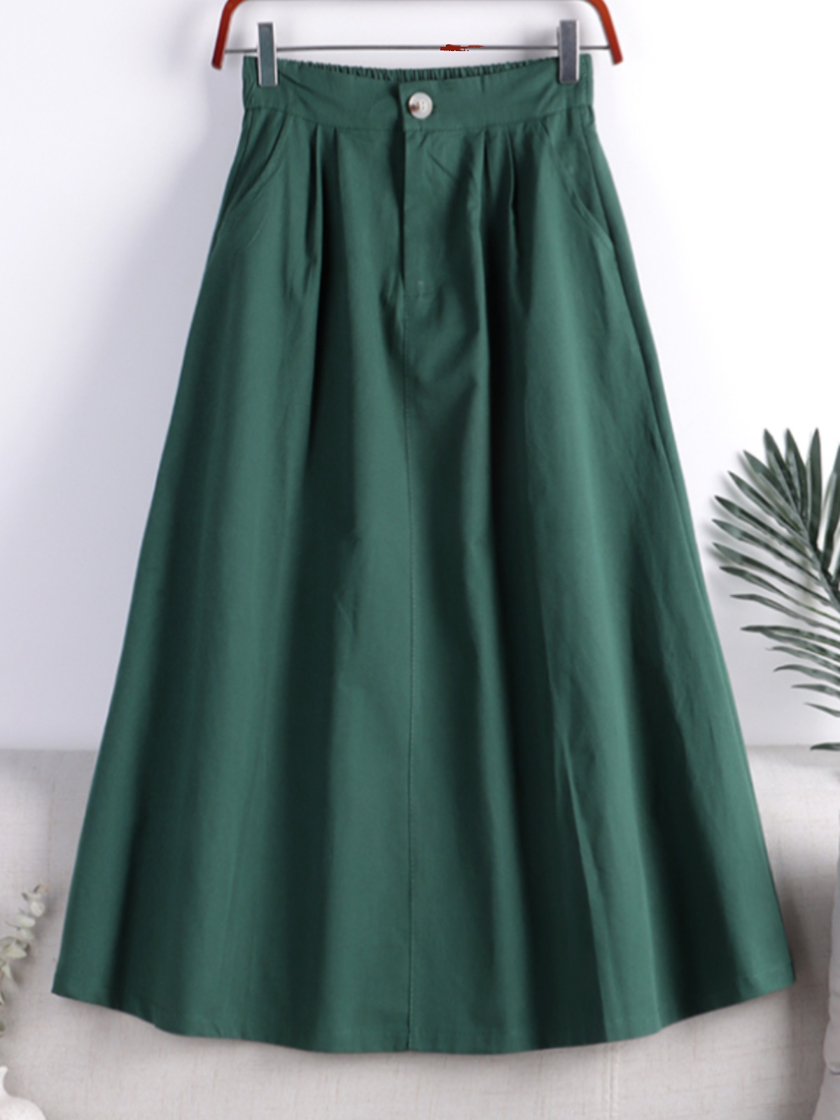 | nameOriginal | Small Mid-length A- line Skirt Women's Summer High Waist Slimming Large Skirt Cotton Pocket One Button Skirt |