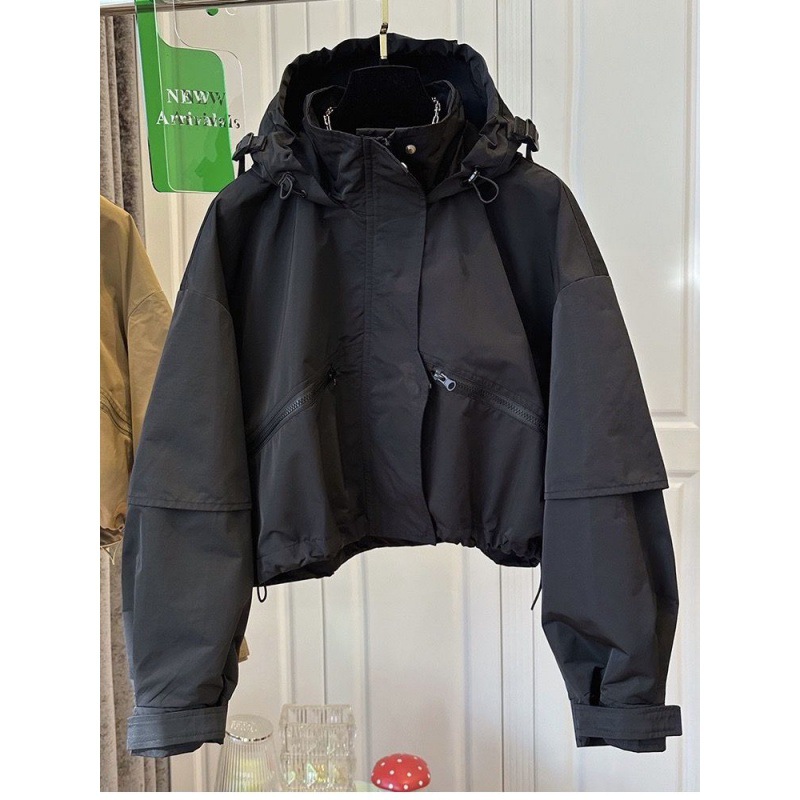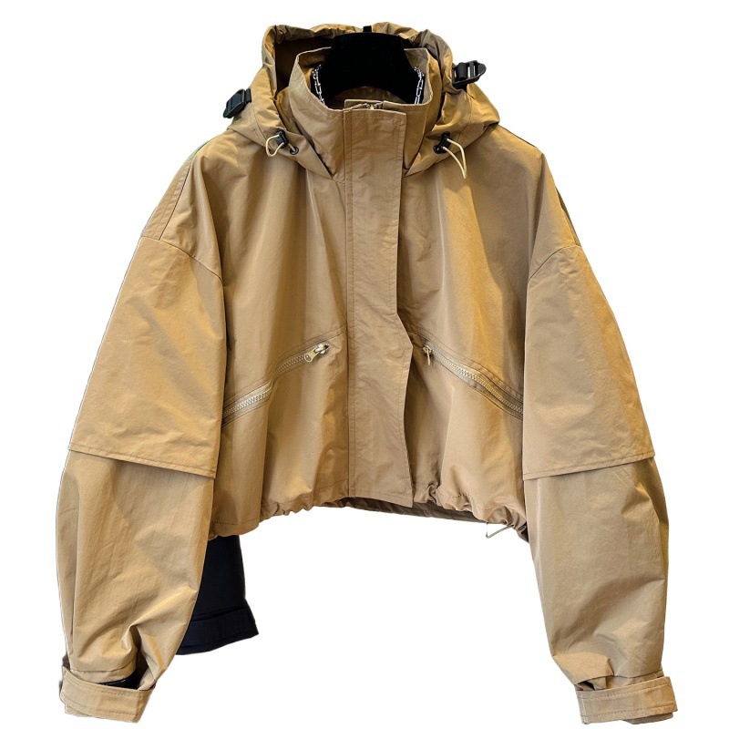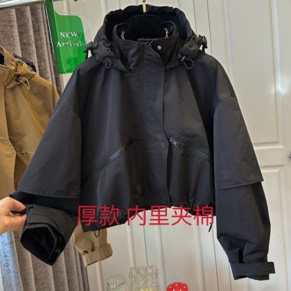 Small Solid Color Design Hooded Long-sleeved Cotton Rushtop 2024 Autumn and Winter New High-end All-match Windbreaker