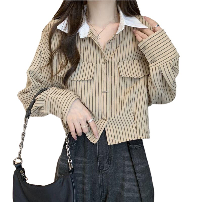 | nameOriginal | Small striped long-sleeved shirt women's shirt short design sense niche top spring 2024 New |