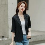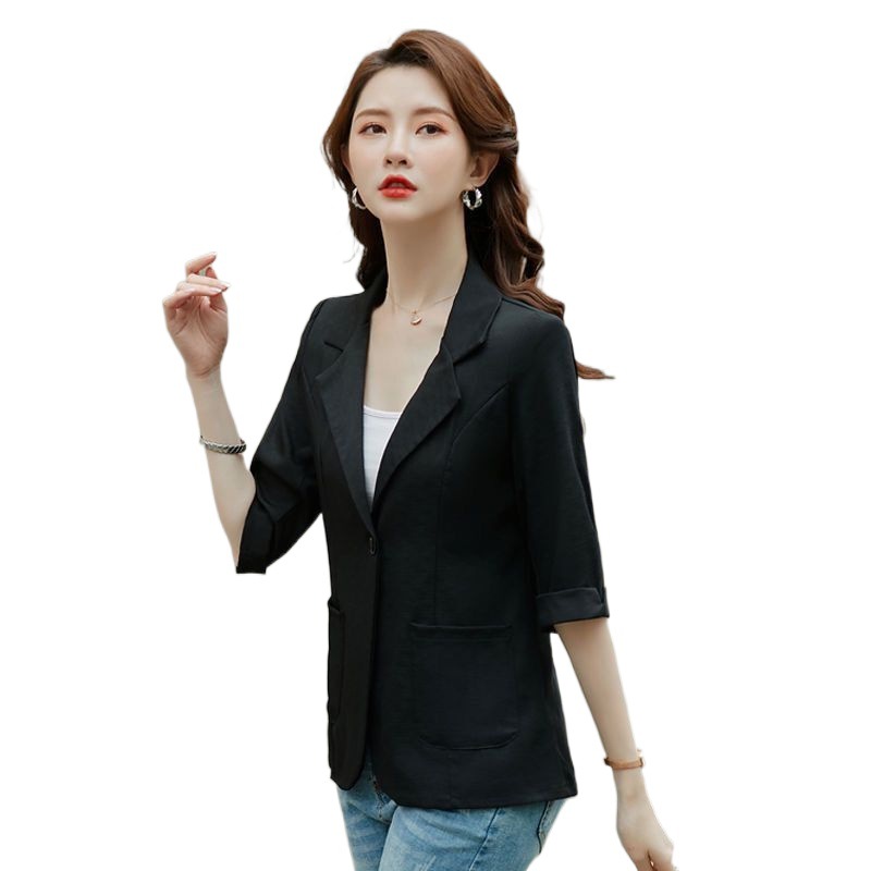 بدلة صغيرة سترة نسائية قصيرة 2023 صيفية رفيعة على الطراز الكوري نمط أجنبي بدلة قصيرة ضيقة للرجال بأكمام سبع نقاط
