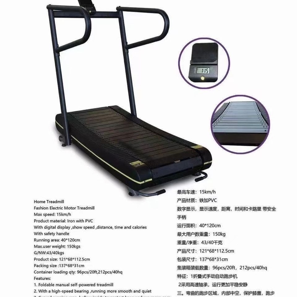 | nameOriginal | Small unpowered home treadmill includes aerobic, strength equipment full set. Movable treadmill unplugged |