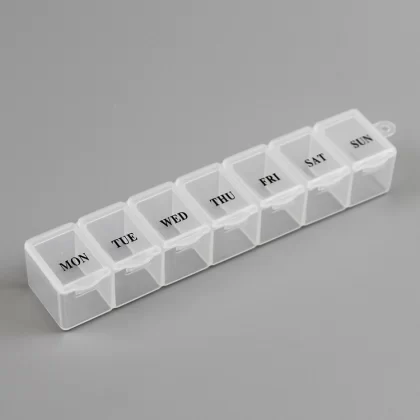 | nameOriginal | Smart box for storing small items with 7 compartments for one week's medicine box, portable hanging hole, plastic compartments, Chinese and English reminder box 822 |