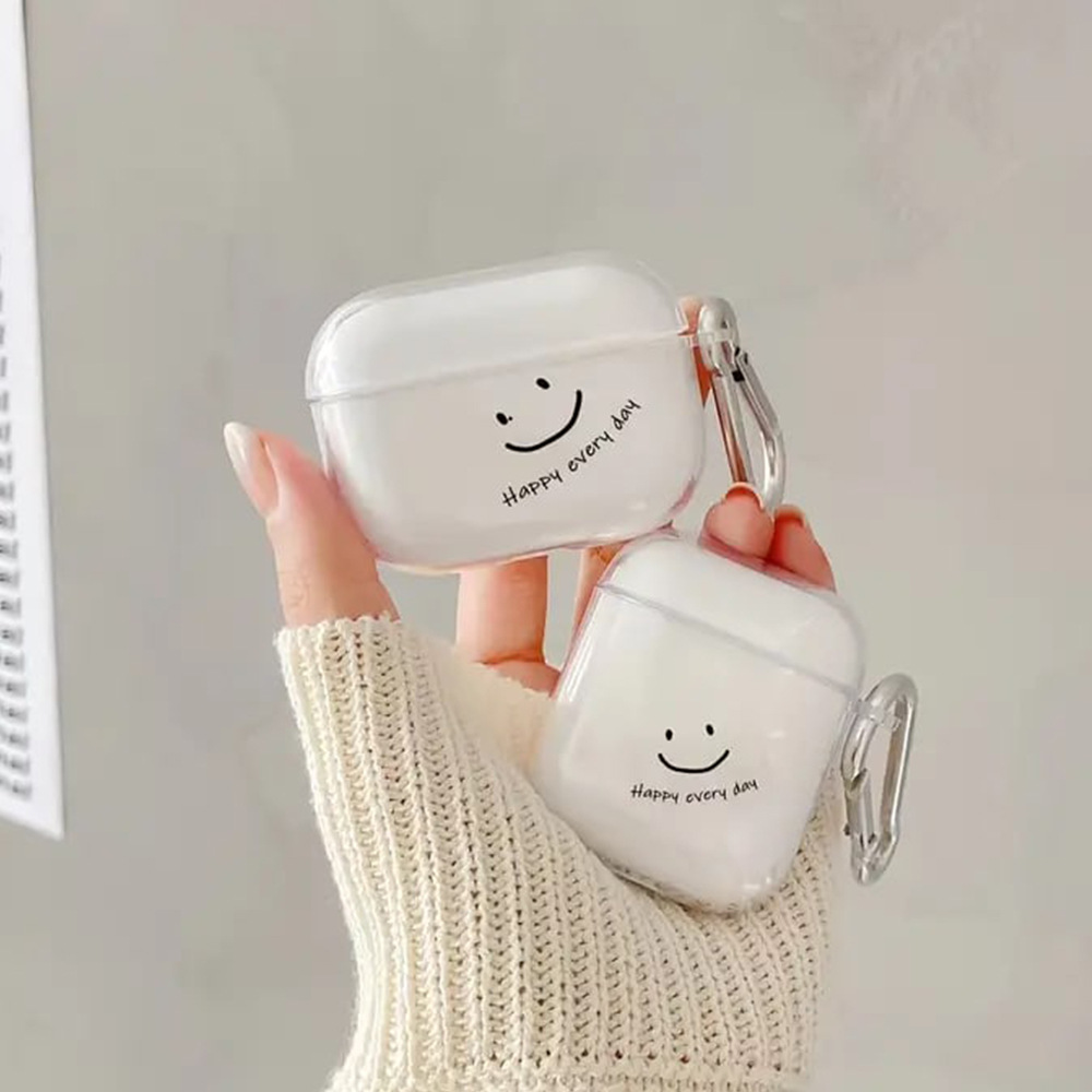 وجه مبتسم مع تعليق لسماعات AirPods حافظة واقية الجيل الثاني من سماعات Apple Bluetooth اللاسلكية الجديدة الناعمة