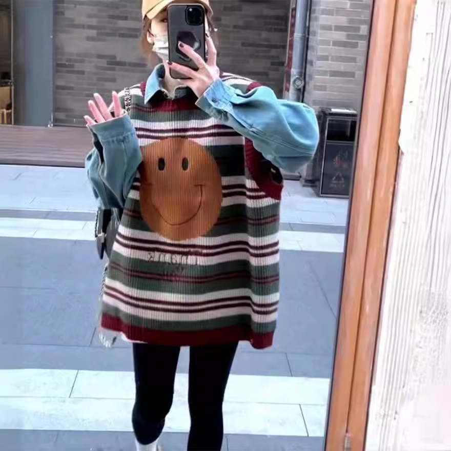 | nameOriginal | Smiley Striped Sweater Vest Women's 2024 Spring and Autumn New Korean Style Fashionable Loose Stacked Vest Top |