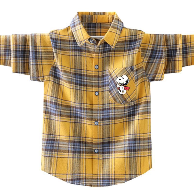 Snoopy Boys' Long Sleeve Shirt 2022 Spring and Autumn New Stylist Boys' Middle and Big Children 4-15 Years Old Trendy Shirt