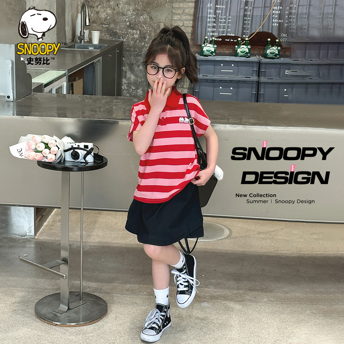 | nameOriginal | Snoopy Summer New Girls' Short-sleeved POLO Shirt Large Children's Top Children's Striped All-match Casual Short-sleeved Shirt |
