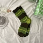 | nameOriginal | Socks for women spring and summer ins trendy green color contrast striped stockings simple and versatile Japanese style pile socks for women |