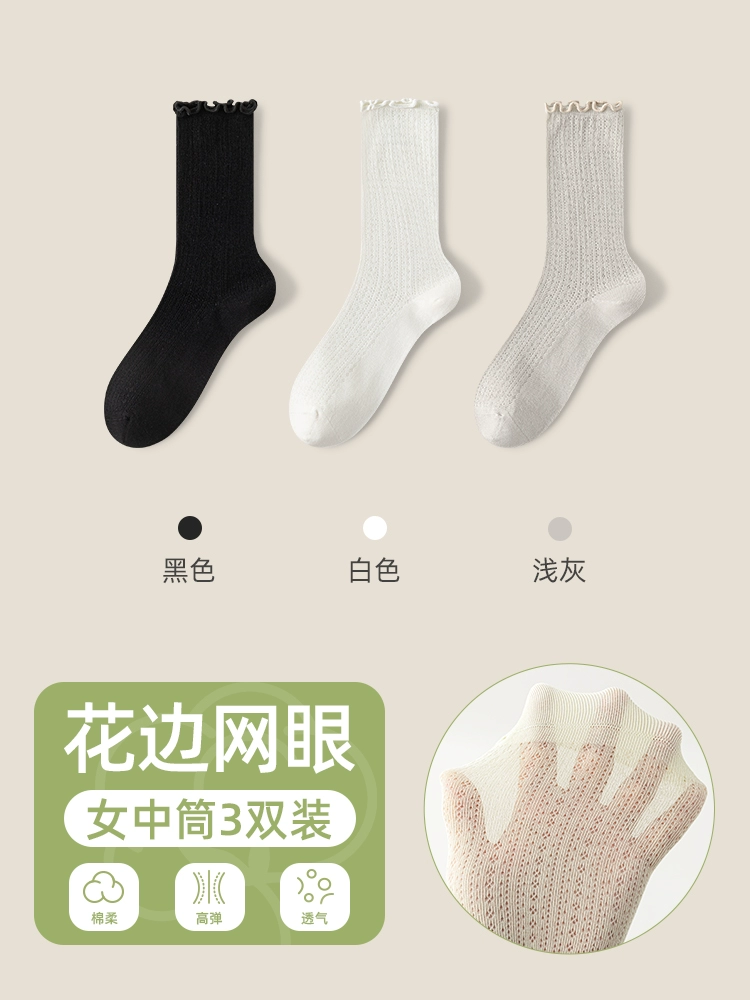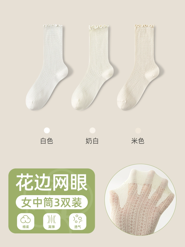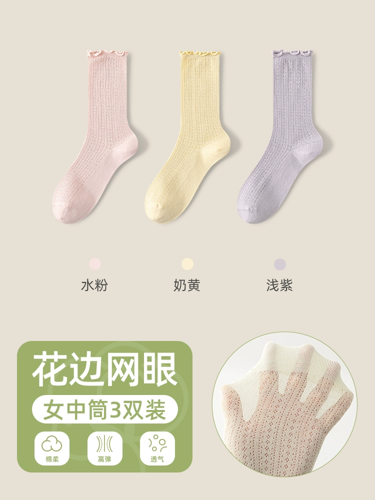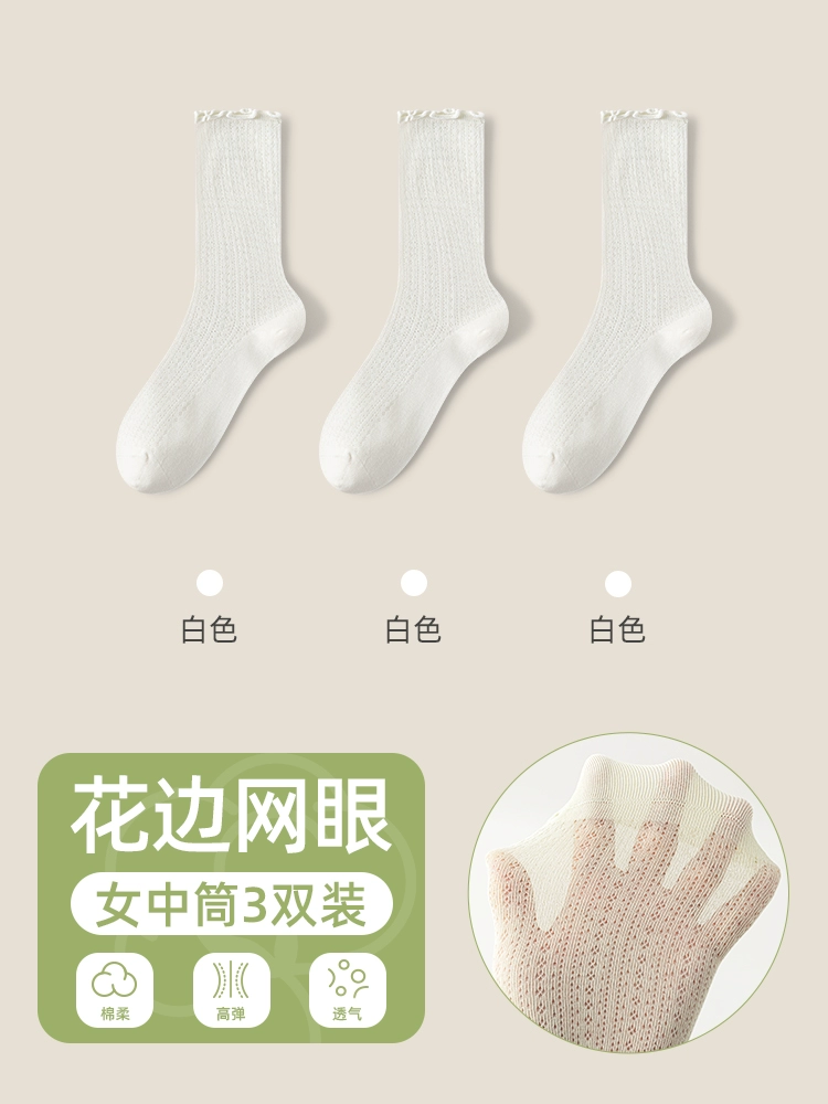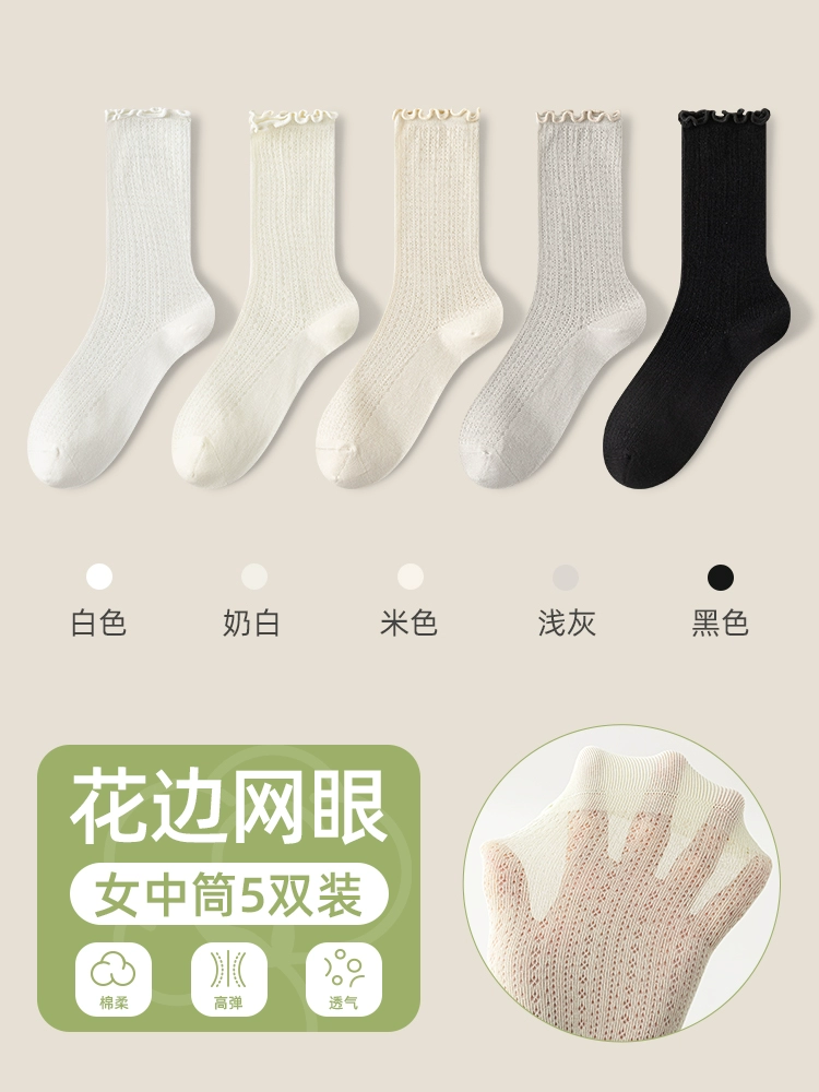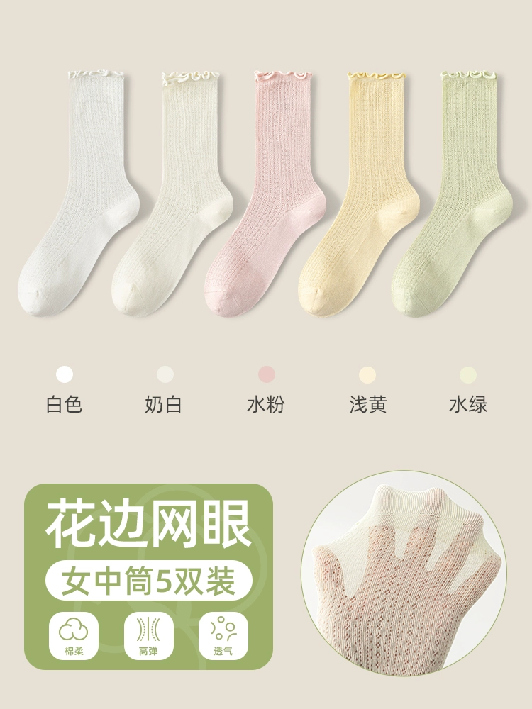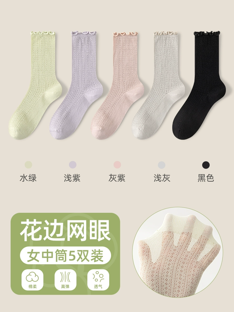 | nameOriginal | Socks women's pile socks summer thin mid-tube socks mesh breathable pure cotton edge confinement socks boneless anti-odor stockings |