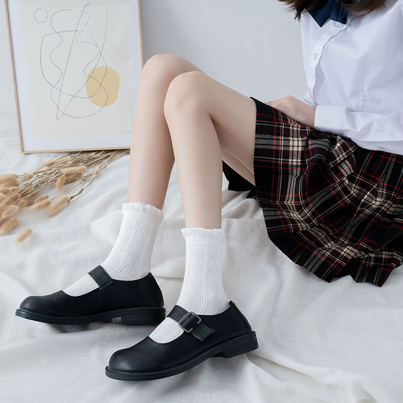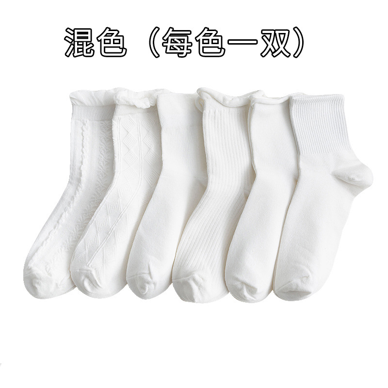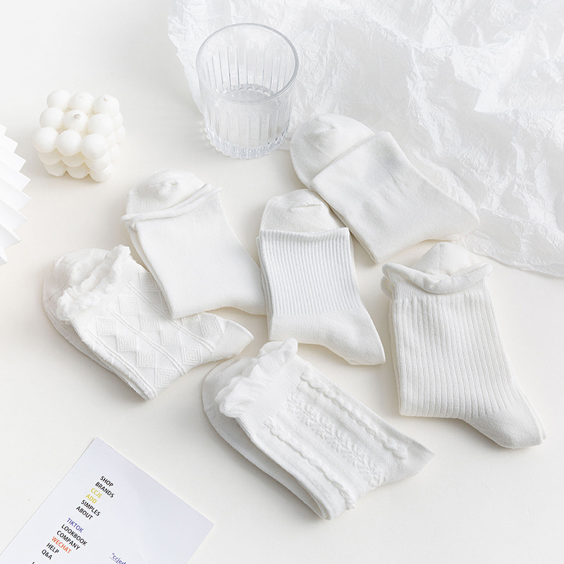 | nameOriginal | Socks Women's Spring and Summer Curled Mid-length Socks Japanese Solid Color Jk Cotton Socks Sweet Breathable Student Socks White Lace Long Socks |