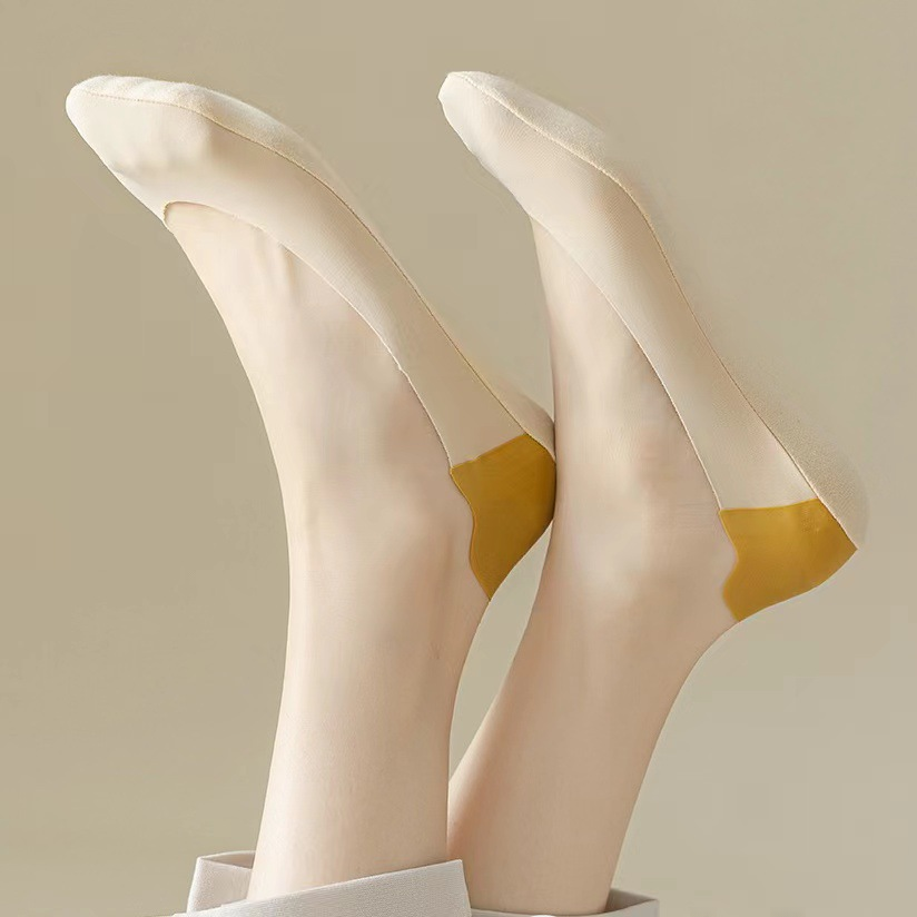 Socks Women's Summer Stitching Ice Silk Boat Socks Cotton Bottom Odor-proof Low-top Shallow Mouth Invisible Socks Non-slip Do Not Fall Short Socks Women