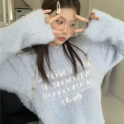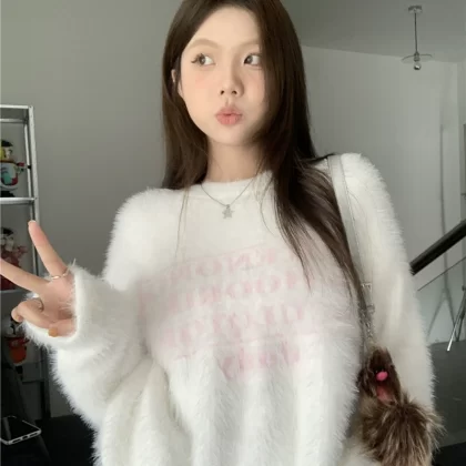 | nameOriginal | Soft and glutinous milk-like mink velvet loose letter sweater |