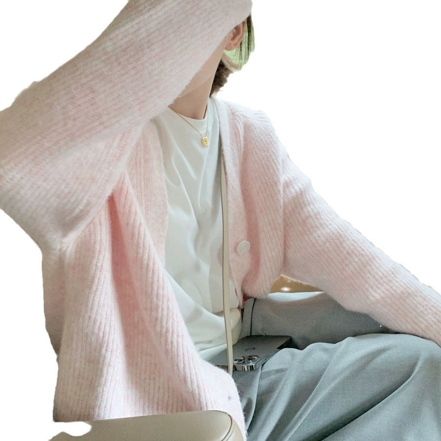 Soft glutinous solid color V-neck sweater cardigan for women 2023 autumn and winter New loose lazy style knitted thickened coat