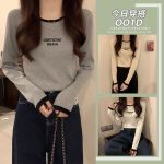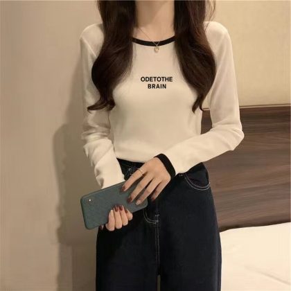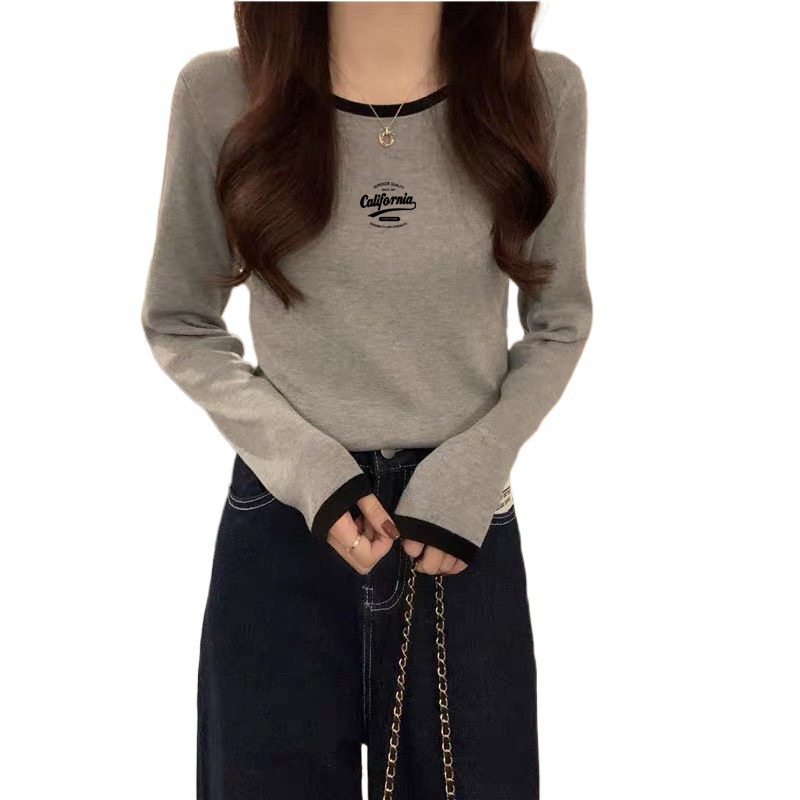 Soft Waxy Fleece 2024 Base Shirt Women's Autumn and Winter New Fashion Niche Design Contrasting Color Crewneck Long-sleeved T-shirt Trendy