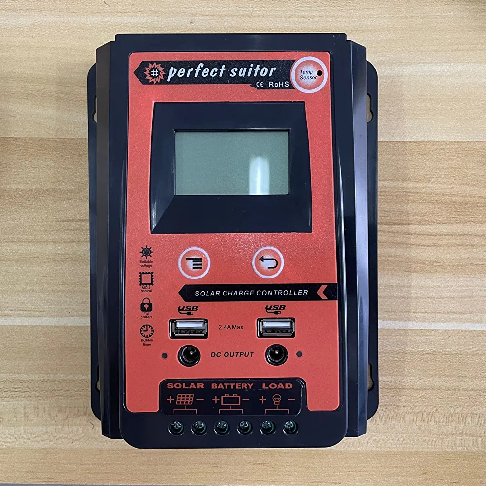 وحدة التحكم MPPT Solar Charge Controller هي جهاز عالي الجودة مصمم لتنظيم شحن بطارية الألواح الشمسية الخاصة بك. إنه متوافق مع أنظمة 12V و 24V، مما يجعله خيارًا متعدد الاستخدامات لمجموعة من إعدادات الطاقة الشمسية. بفضل سعة 70 أمبير، فإن وحدة التحكم بالشحن هذه قادرة على التعامل مع كميات كبيرة من الطاقة، مما يضمن شحن البطارية بسرعة وكفاءة. تسمح لك منافذ USB المزدوجة بشحن أجهزتك مباشرة من وحدة التحكم، بينما توفر شاشة LCD معلومات في الوقت الفعلي عن حالة شحن البطارية. تعتبر وحدة التحكم في شاحن بطارية الطاقة الشمسية هذه ضرورية لأي شخص يتطلع إلى تحسين نظام الطاقة الشمسية الخاص به والتأكد من أن بطاريته مشحونة دائمًا وجاهزة للعمل.