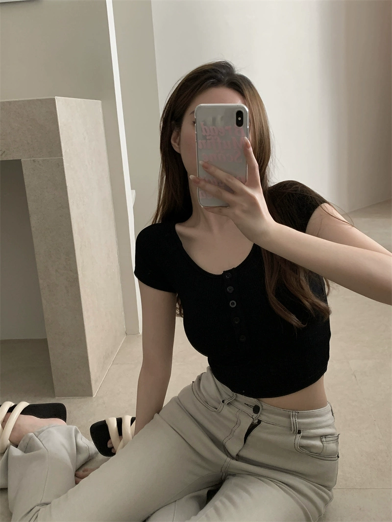 | nameOriginal | Solid color 2023 new slim round neck short-sleeved T-shirt |