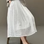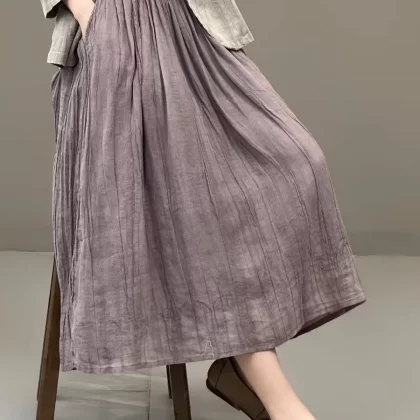 | nameOriginal | Solid color cotton and linen elastic waist crotch-covering pleated skirt |