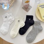 بلون كريم المرأة الجوارب الربيع والصيف رقيقة تنفس الجوارب القصيرة المطرزة القوس Ins العصرية الباليه نمط جوارب قطنية