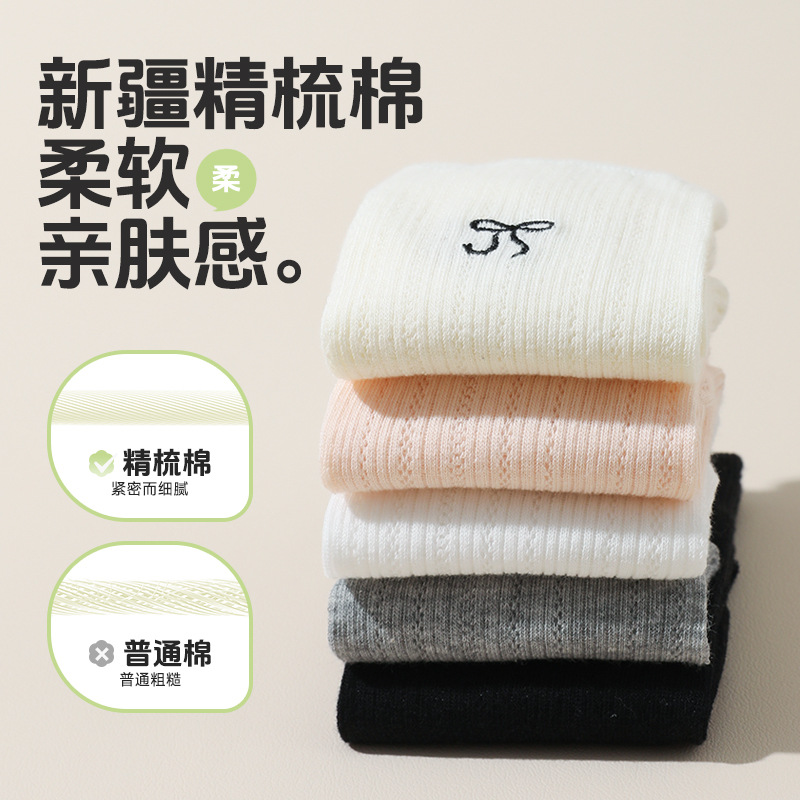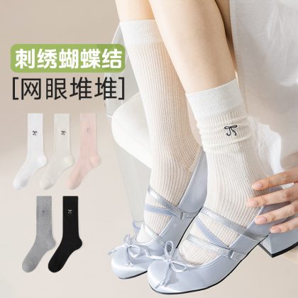 | nameOriginal | Solid Color Embroidered Bow Pile Socks Thin Mesh Breathable High-elastic Tube Socks All-match Commuter Casual Socks for Children |